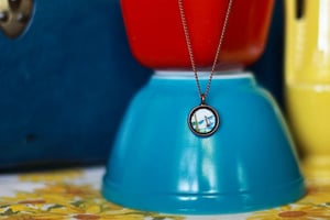 Pendant is 3/4inch and set in vintage rustic copper bezel.